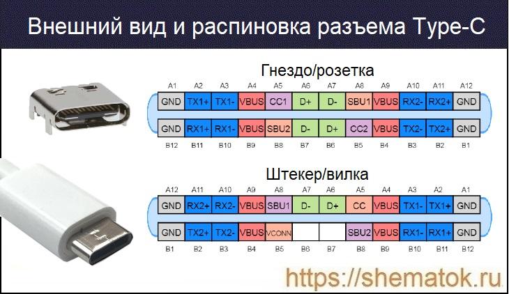 В настоящее время штекер, вилка и кабель Type-C (на 24 контакта) являются неотъемлемой частью любого портативного устройства и миниатюрной альтернативой уже устаревших версий межсоединений USB (micro-AB, Standart-A). Их разработка была обусловлена созданием промышленностью более тонкого оборудования, в котором невозможно применение предыдущих малогабаритных модификаций разъемов и ужесточением требований к передаче данных между портативными устройствами. Внешний вид и распиновка показаны на изображении ниже.