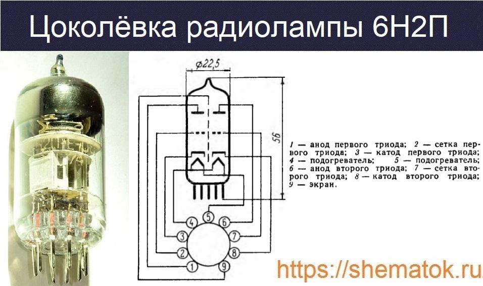 В статье рассмотрены технические характеристики электронной лампы 6Н2П, которая представляет собой миниатюрный двойной триод. Первые версии этого устройства появились в 50-х и с тех пор их конструкция принципиально не менялась. Основное назначение – усиление напряжения низкой частоты. До середины 70-х применялась при создании радиоприемников, передатчиков, телевизоров и др. Считается, что прототипом для разработки её в Советском Союзе послужила американская радиолампа 12AX7WA.
